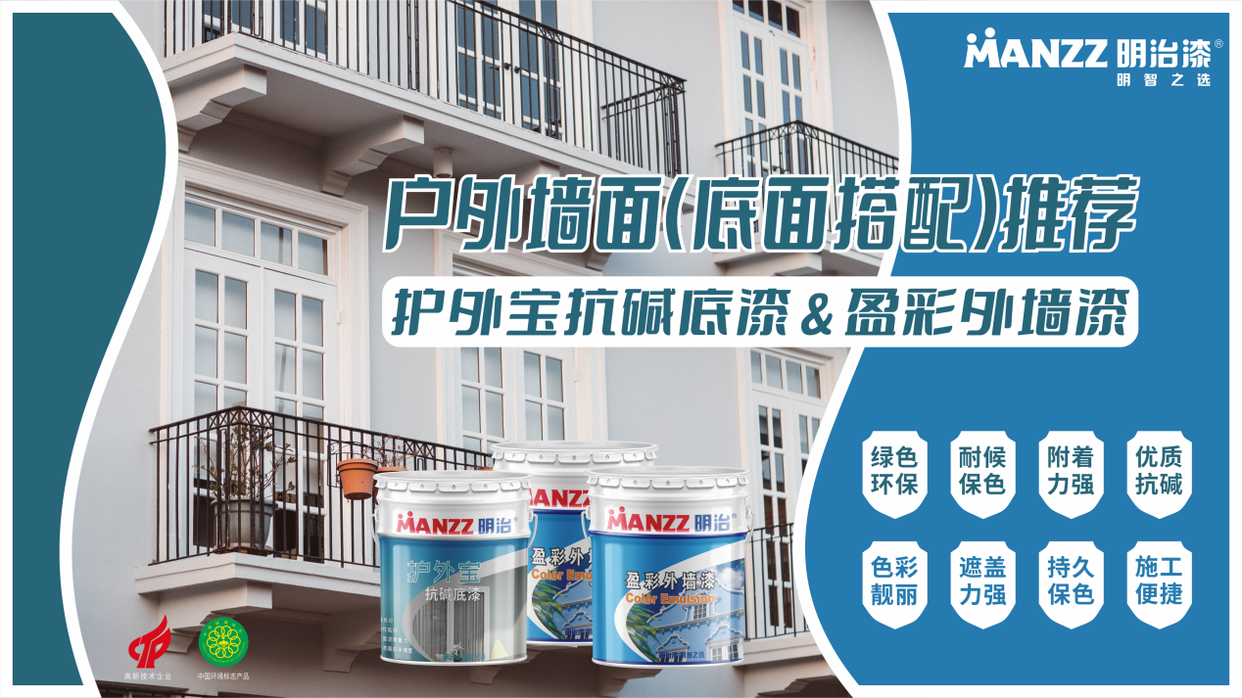 Supporting system: Manzz Anti-Alkali Primer + (Manzz Refreshing Exterior Wall Latex Paint & Manzz Colorful Exterior Wall Paint)