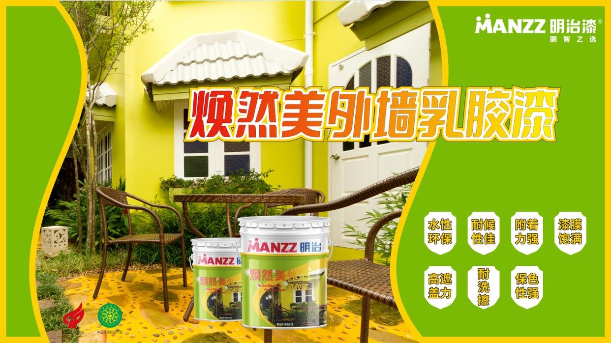 Manzz Refreshing Exterior Wall Latex Paint is a water-based, environmentally friendly exterior wall product. It is formulated with superior raw materials and a special recipe, offering excellent weather resistance, washability, high hiding power, good adhesion, a wide range of colors, and excellent color retention. It is suitable for the decoration and protection of exterior walls of residential buildings, hotels, office buildings, schools, and other structures.